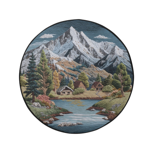 Mountains Spare Tire Wheel Cover, River Trees Faux Embroidery Back Up Camera Hole Design Backup Rear RV Car Camper Truck Trailer Motorhome