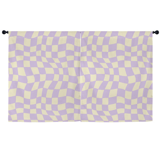 Checkered Window Curtain, Pink Cream Check Kitchen Living Room Bedroom Bathroom Fabric Rod Pocket Decor Housewarming Home 63 Inch