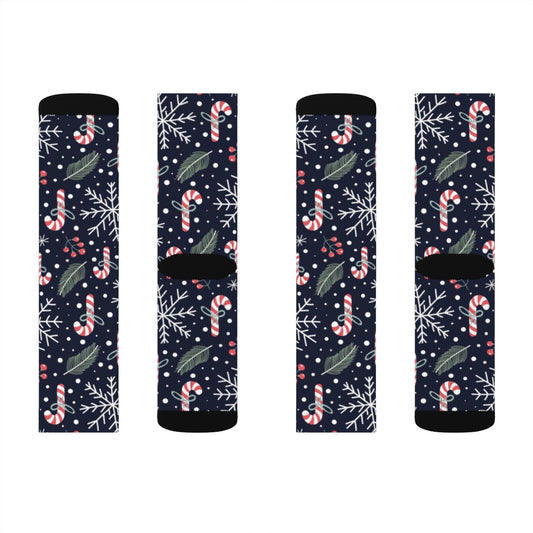 Holiday Christmas Socks, Sugar Candy Cane Snowflakes Winter 3D Sublimation Socks Women Men Fun Cool Funky Crazy Cute Unique Gift