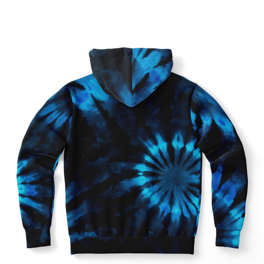 Black and Blue Tie Dye Hoodie, Pullover Men Women Adult Aesthetic Graphic Cotton Hooded Sweatshirt with Pockets Designer Plus Size