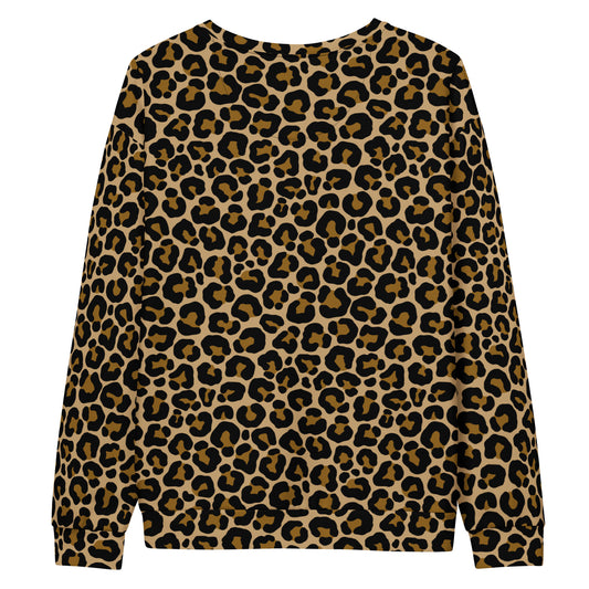 Leopard Sweatshirt Cotton, Animal Print Brown Graphic Crewneck Fleece Sweater Jumper Pullover Men Women Adult Aesthetic Designer Top