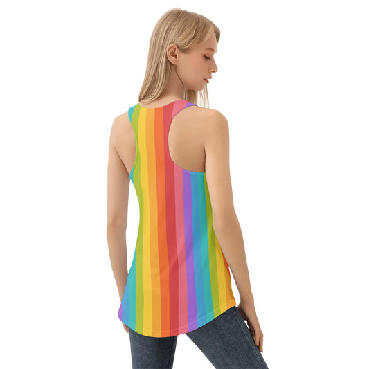 Rainbow Striped Women Racerback Tank Top, Vertical Pride Festival Yoga Workout Summer Muscle Sleeveless Female Ladies Designer Shirt Tee