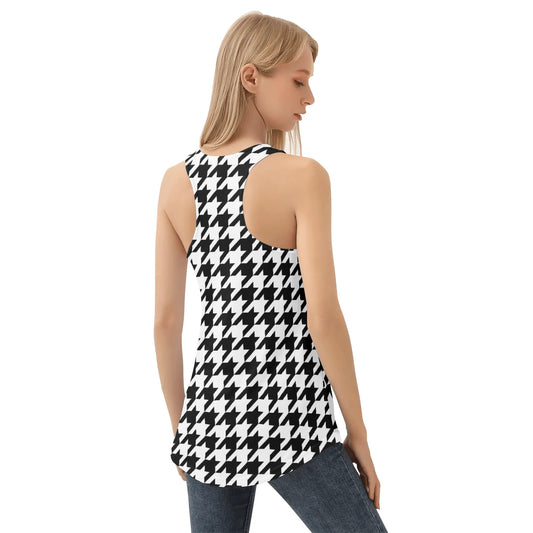 Houndstooth Women Racerback Tank Top, Black White Festival Yoga Workout Summer Muscle Sleeveless Female Ladies Designer Shirt Tee