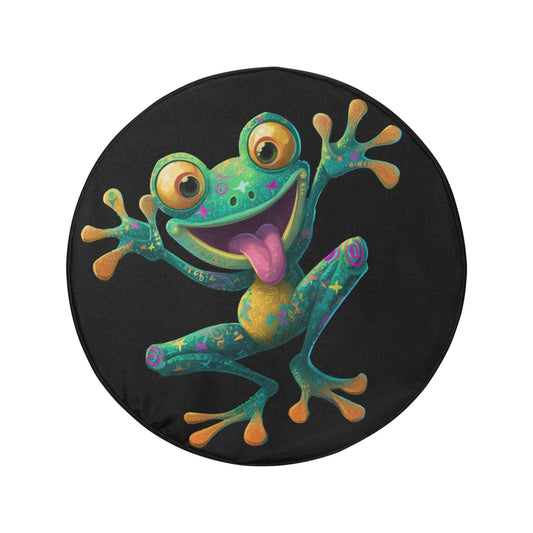 Funny Frog Spare Tire Cover, Goofy Green Retro Black Wheel Auto Back Up Camera Hole Rear Unique Design Funny Spare RV Trailer Camper