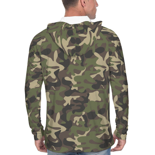 Camo Men Sun Hoodie, Green Camouflage Summer UPF 50 UV Protection SPF Pullover Lightweight Long Sleeve Golf Breathable Hooded Pockets