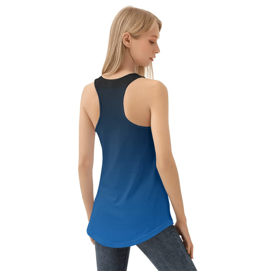 Black Blue Ombre Women Racerback Tank Top, Tie Dye Gradient Festival Yoga Workout Summer Muscle Sleeveless Female Ladies Designer Shirt Tee