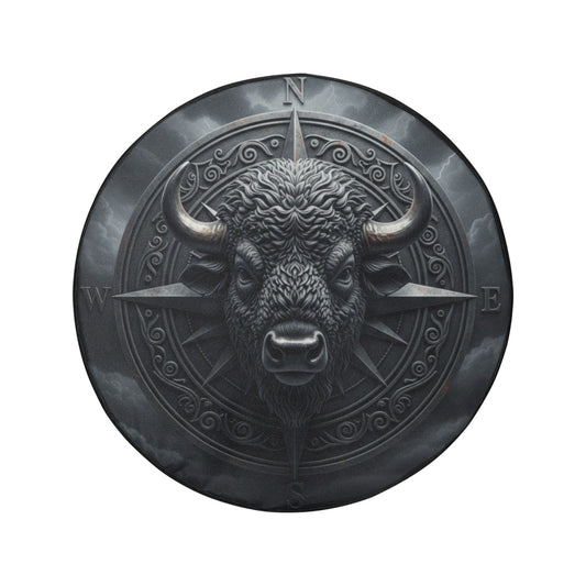 Black Buffalo Compass Spare Tire Wheel Cover, Navigation Travel Custom Back Up Camera Hole Design Rear Back RV Car Lover Camper Motorhome