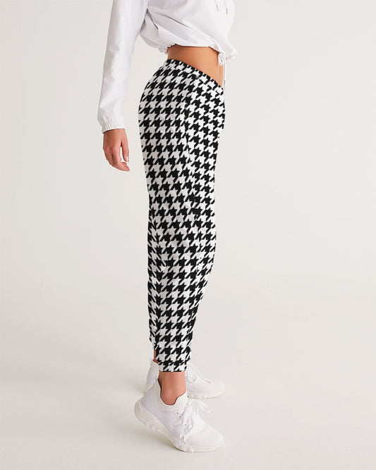 Houndstooth Women Track Pants, Black White Female Sports Exercise Zip Pockets Quick Dry Elastic Waist Windbreaker Tracksuit Joggers Ladies