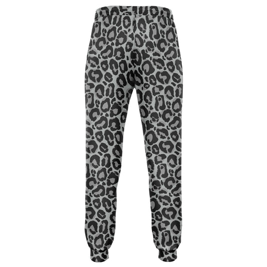 Grey Leopard Joggers Sweatpants with Pockets, Gray Cheetah Animal Print Women Men Female Ladies Fleece Sweats Pants Loungewear Bottoms