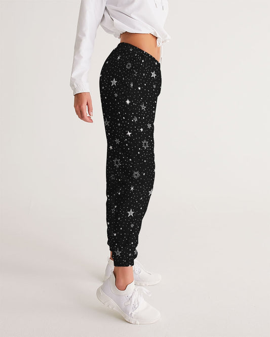 Stars Women Track Pants, Space Black White Female Sports Exercise Zip Pockets Quick Dry Elastic Waist Windbreaker Tracksuit Joggers Ladies