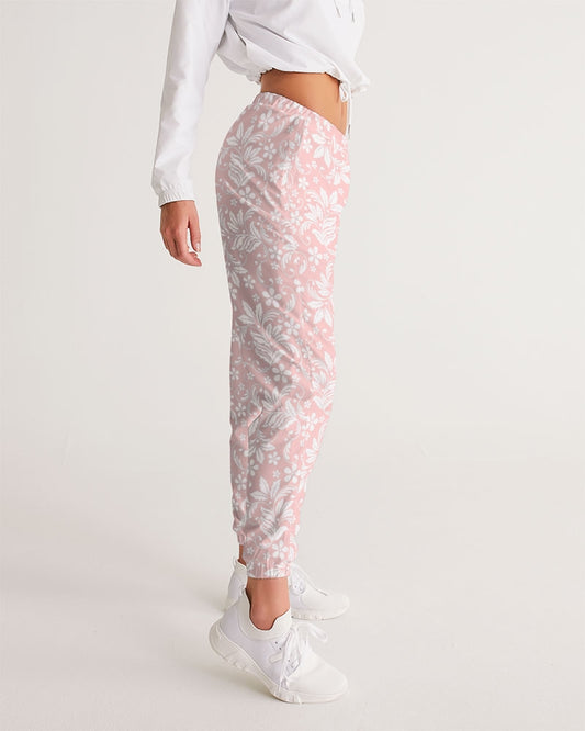 Pink White Floral Women Track Pants, Flowers Female Sports Exercise Zip Pockets Quick Dry Elastic Waist Windbreaker Tracksuit Joggers Ladies