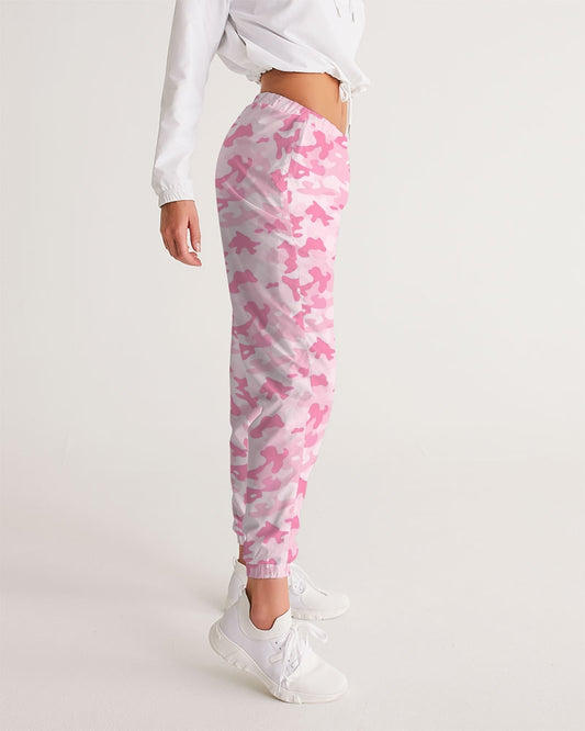 Pink Camo Women Track Pants, Camouflage Female Sports Exercise Zip Pockets Quick Dry Elastic Waist Windbreaker Tracksuit Joggers Ladies