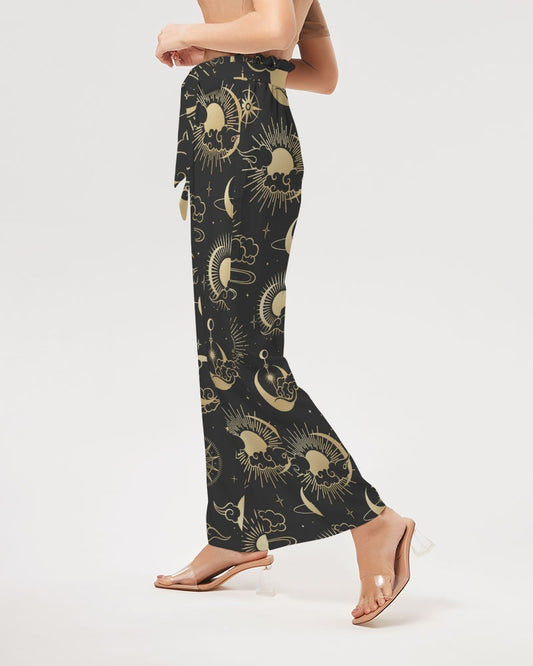 Sun Moon Women Wide Leg Pants Pockets, Constellation Celestial Space Yoga Trousers High Waisted Ladies Drawstring Lounge Flowy Work Summer