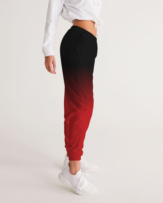 Red Black Ombre Women Track Pants, Gradient Tie Dye Female Sports Exercise Zip Pockets Quick Dry Elastic Waist Windbreaker Joggers Ladies