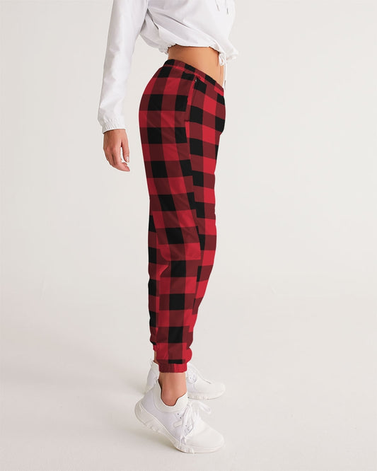 Red Buffalo Plaid Women Track Pants, Check Female Sports Zip Pockets Quick Dry Festival Elastic Waist Windbreaker Tracksuit Joggers Ladies