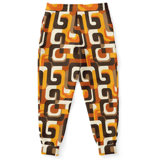 70s Retro Joggers Sweatpants Pockets, Geometric Brown Orange Vintage Women Men Female Ladies Fleece Comfy Sweats Pants Loungewear Bottoms