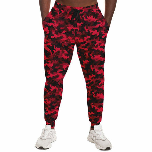 Red Joggers Sweatpants with Pockets, Camo Camouflage Women Men Female Ladies Fleece Comfy Cotton Sweats Pants Loungewear Bottoms