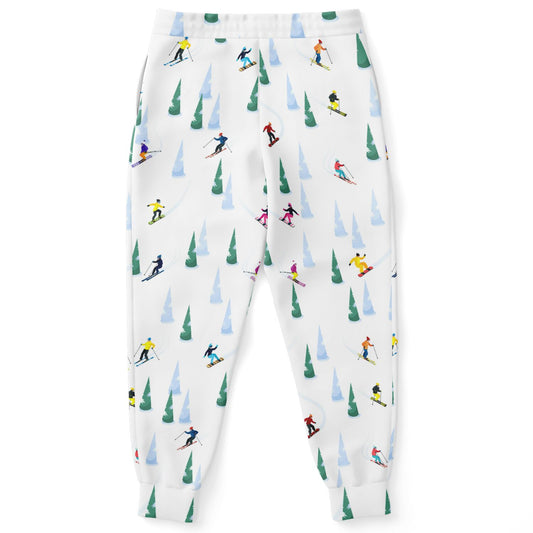 Ski Joggers Sweatpants Pockets, Snow Skiers Apres Ski Snowboard White Women Men Female Ladies Fleece Comfy Sweats Pants Loungewear Bottoms