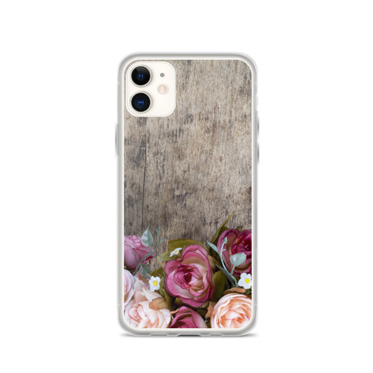 Roses on Wood iPhone 14 13 12 Pro Max Case, Cute Wooden Pink Flowers Print Gift Aesthetic iPhone 11 Mini SE XS XR X 7 Plus 8 Cell Phone
