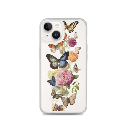Vintage Butterfly Floral Clear iPhone® 14 Pro Max Case, Flowers Print Cute Aesthetic iPhone 13 12 11 Mini SE XS Max XR X 8 7 Transparent