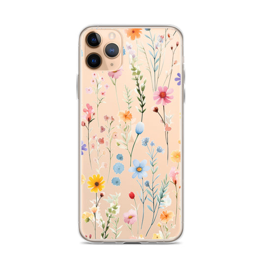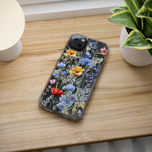 Wildflowers Clear iPhone 14 13 12 11 Pro Max Mini Case, Floral Flowers Watercolor Print Cute Aesthetic Galaxy S22 Transparent