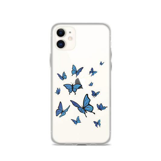 Blue Butterfly Clear iPhone 15 14 13 Pro Max Case, Monarch Print Cute Gift Aesthetic iPhone 12 11 Mini SE XS Max XR X 8 7 Plus Cell Phone