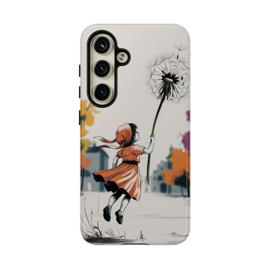 Girl Dandelion Tough Phone Case, Kids Cute Fantasy iPhone 16 15 14 13 Pro Max 12 11 8 Plus X XR XS Galaxy S24 S23 S22 S21 Google Pixel Cover
