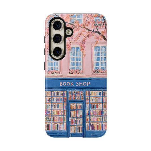 Book Shop Tough Phone Case, Reading Pink Floral iPhone 16 15 14 13 Pro Max 12 11 8 Plus X XR XS Galaxy S24 S23 S22 S21 Google Pixel Cover