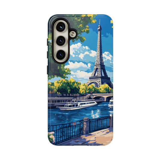 Paris Eifel Tower Tough Phone Case, Seine France iPhone 16 15 14 13 Pro Max 12 11 8 Plus X XR XS Galaxy S24 S23 S22 S21 Google Pixel Cover