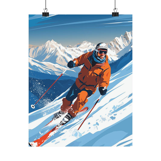 Vintage Ski Poster, Skier Mountain Snow Retro Print Wall Art Matte Vertical Travel Artwork Small Large Decor Paper