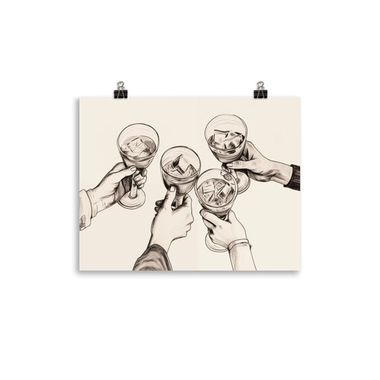 Cheers Bar Cart Drinks Poster Print, Cocktails Toast Dining Kitchen Wall Art Horizontal Paper Artwork Small Large Cool Decor