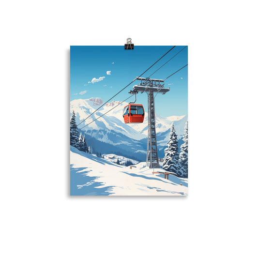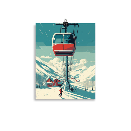 Ski Gondola Poster Print, Retro Vintage Snow Mountain Wall Image Art Vertical Travel Paper Artwork Small Large Cool Office Decor