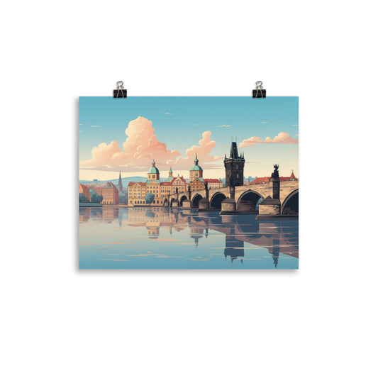 Prague Poster Print, Charles Bridge Old Town Czech Republic Vintage Retro Praha Wall Art Horizontal Travel Paper Artwork Small Large
