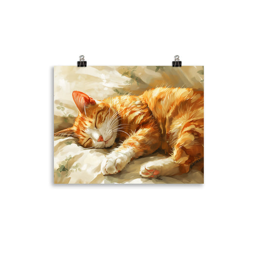 Orange Cat Sleeping Poster Print, Cute Kitten Wall Image Art Horizontal Paper Artwork Small Large Cool Room Office Decor