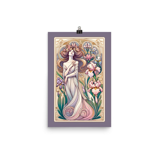 Art Nouveau Poster Print, Vintage Retro Woman Floral Purple Wall Art Vertical Travel Paper Artwork Small Large Office Decor