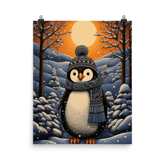 Penguin Poster Print, Winter Snow Cute Animal Illustration Wall Art Vertical Paper Artwork Small Large Cool Room Office Decor