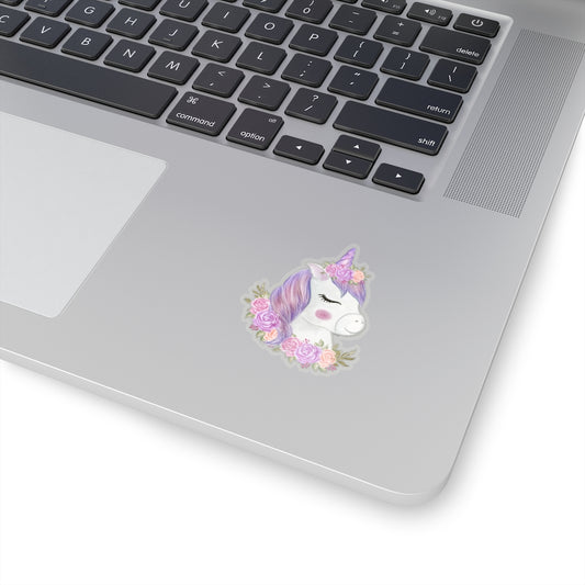 Unicorn Roses Sticker, Watercolor Girl Purple Laptop Decal Vinyl Cute Waterbottle Tumbler Car Bumper Aesthetic Die Cut Wall Mural
