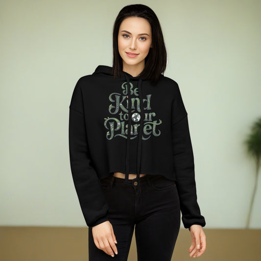 Be Kind to Our Planet Women Cropped Hoodie, Positive Environment Earth Ladies Aesthetic Graphic Hooded Pullover Sweatshirt Crop Jumper Top