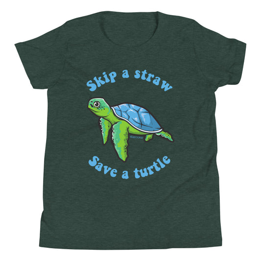 Skip A Straw Save A Turtle Shirt, Teen Tween Girl, Sea Turtle Beach Ocean Lover Gift Youth Kids Aesthetic Short Sleeve T-Shirt