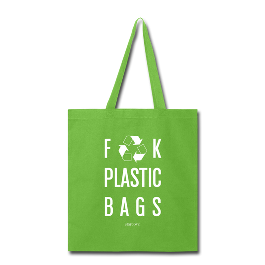 Fuck Plastic Bags, Tote Bag Recycle & Reuse, Funny No Plastic Free Shrink Plastic Environment Awareness Activist Cotton Canvas Tote Bag