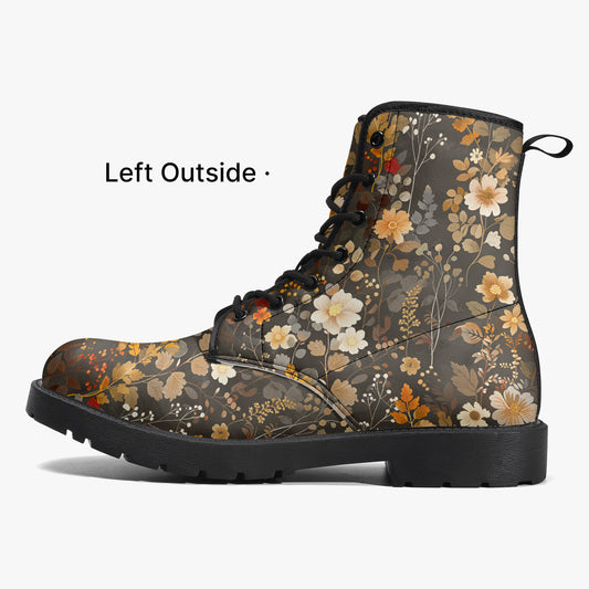 Floral Leather Boots, Brown Flowers Boho Lace Up Shoes Hiking Women Men Female Festival Black Ankle Combat Work Winter Casual Fall