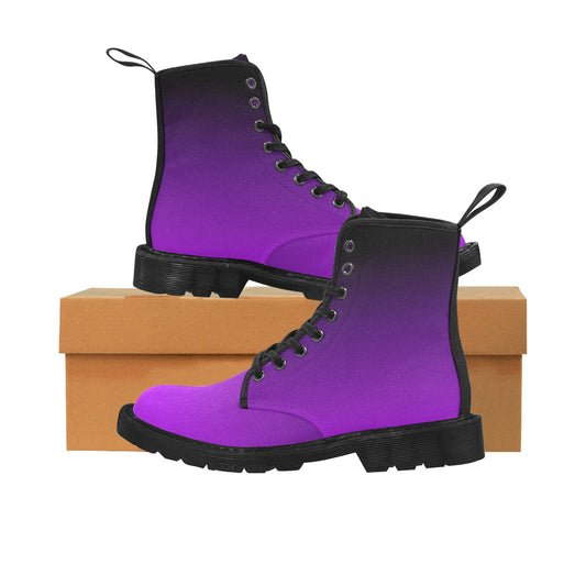 Purple Black Ombre Women's Combat Boots, Gradient Dip Dye Vegan Canvas Lace Up Shoes Print Army Ankle Hiking Winter Casual Custom Ladies