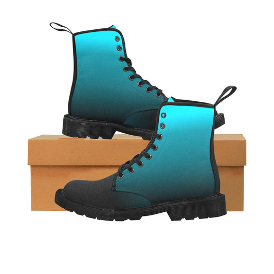 Black Blue Ombre Women's Combat Boots, Gradient Dip Tie Dye Vegan Canvas Lace Up Shoes Print Army Ankle Winter Punk Casual Custom Gift