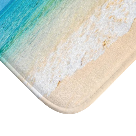 Beach Bath Mat, Ocean Tropical Coastal Decor Memory Foam Cute Shower Bathroom Decor Non Slip Floor Large Small Washable Quick Dry Rug