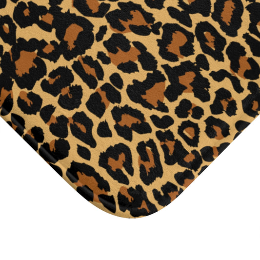 Leopard Print Bath Mat, Animal Cheetah Shower Microfiber Bathroom Floor Decor Non Slip Accessories Large Small Rug
