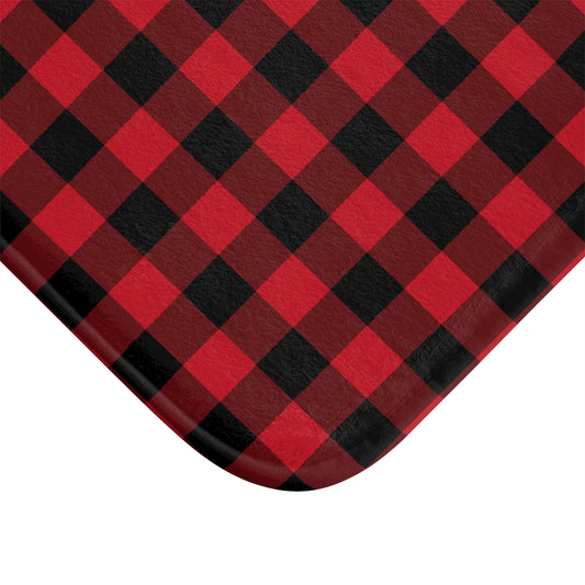 Red Black Buffalo Plaid Bath Mat, Check Christmas Xmas Shower Bathroom Decor Non Slip Floor Memory Foam Microfiber Large Small Washable Rug