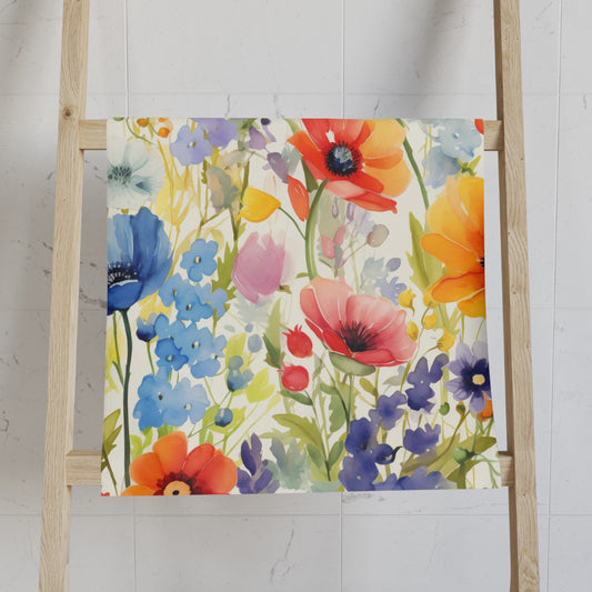 Wildflowers Hand Towel, Watercolor Floral Tea Bath Bathroom Guest Kitchen Cotton Towel Great Cute Gift Her Women Farmhouse Kitchen Linen