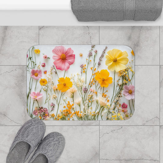 Wildflowers Bath Mat, Floral Flowers Botanical Garden Shower Bathroom Decor Non Slip Floor Memory Foam Microfiber Large Small Washable Rug