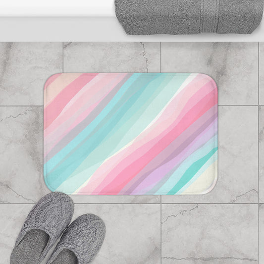 Pastel Stripes Bath Mat, Striped Pink Green Memory Foam Cute Shower Bathroom Decor Non Slip Floor Large Small Washable Rug