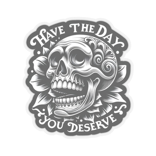 Day You Deserve Sticker Decal, Skull Skeleton Sarcastic Art Vinyl Laptop Cute Waterbottle Tumbler Car Waterproof Bumper Clear Aesthetic Wall